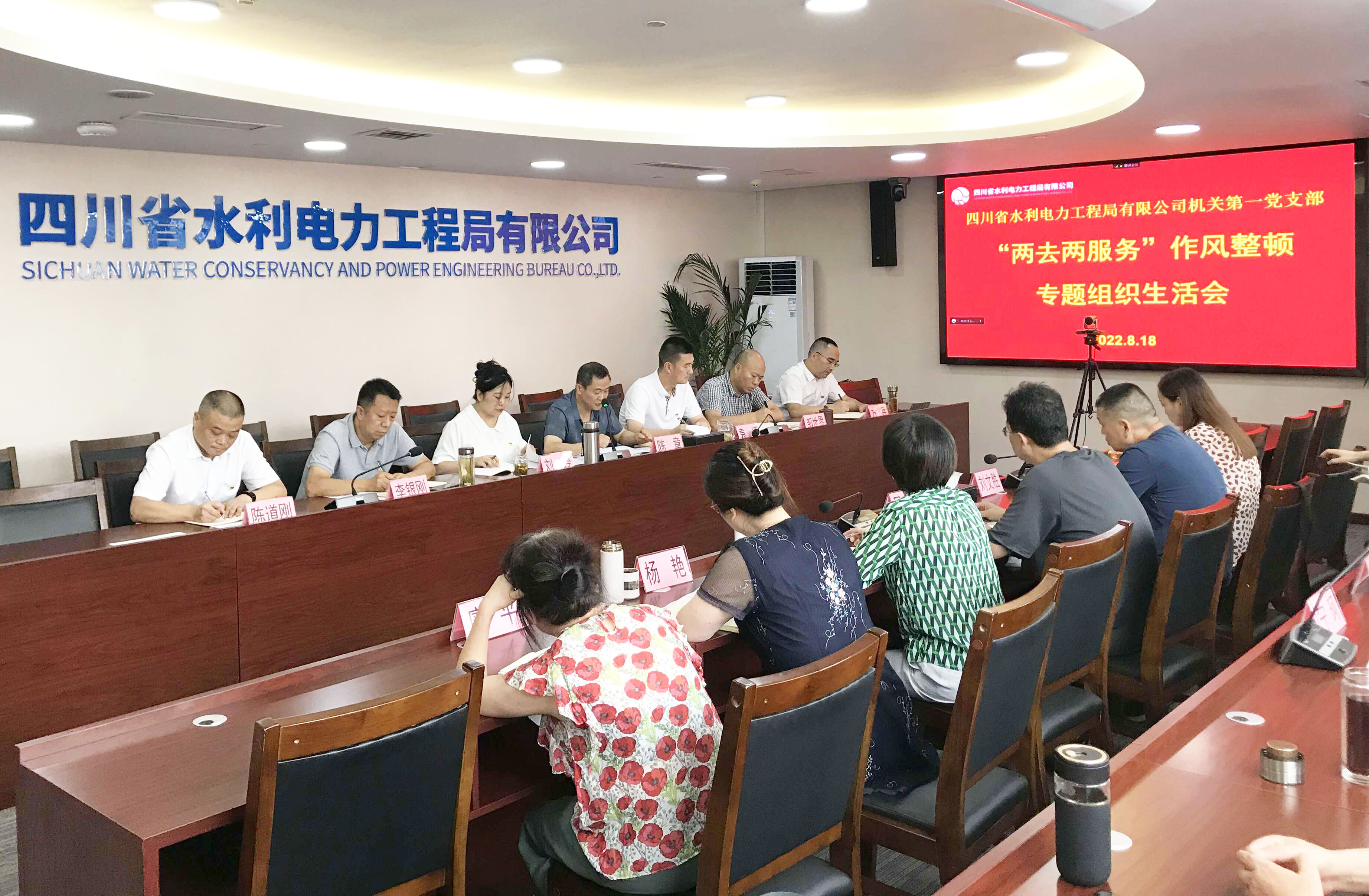 8月18日下午,工程局公司機關第一黨支部在公司總部大會議室召開“兩去兩服務”作風整頓轉入“抓整改重鞏固看成效”階段專題組織生活會。資陽辦公區以視頻形式參加。會議由支部書記陳章主持,支部全體黨員及支部涵蓋部門非黨員職工參加會議。