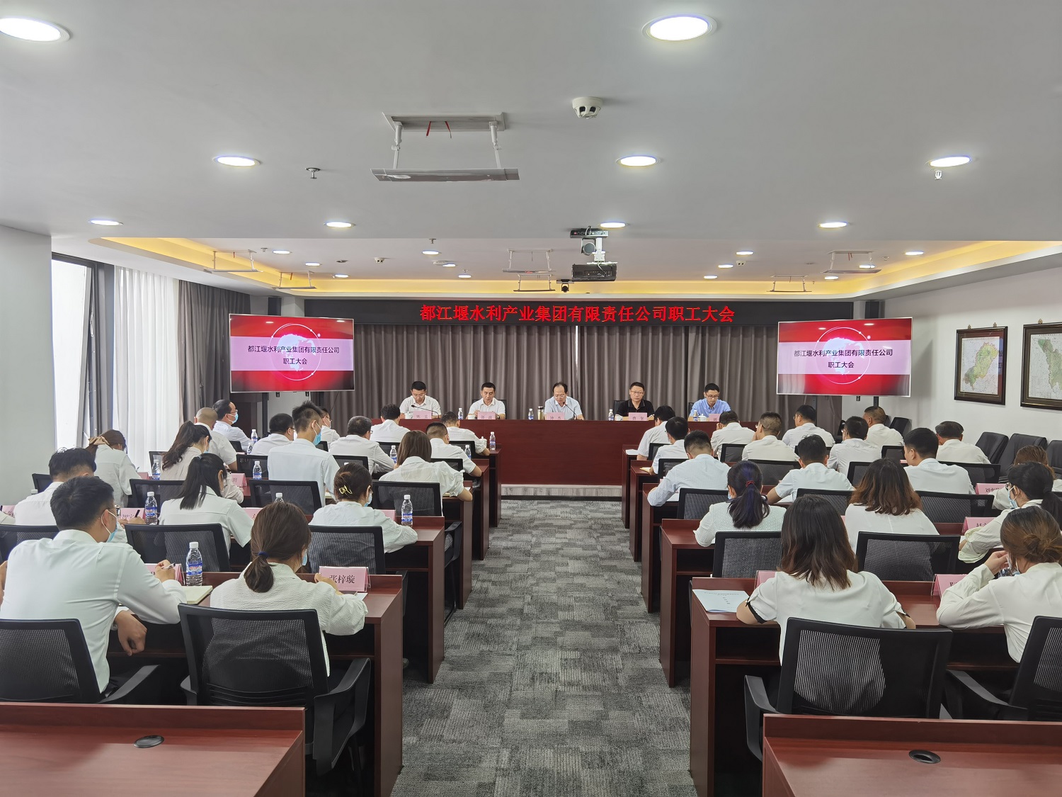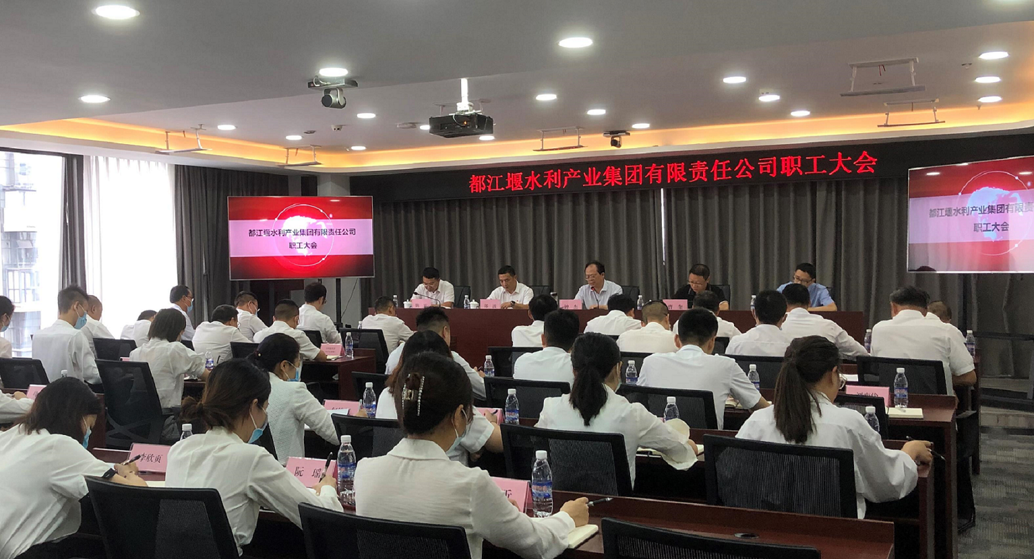 2021年9月7日,都江堰水利產業集團有限責任公司在公司總部召開職工大會。省水發集團黨委書記、董事長兼產業公司黨委書記、董事長鐘杰,省水發集團組織人力資源部部長曹奎,省水發集團經營管理部部長劉華出席大會。