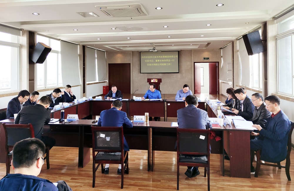 2021年3月18日,四川省水利發展集團有限公司黨委書記、董事長鐘杰一行蒞臨四川省水利水電勘測設計研究院有限公司(以下簡稱設計院公司)調研座談,集團尹曉東、黃永沾等領導和有關部門領導、設計院公司班子成員及有關部門負責人參會。