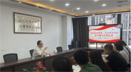 各黨支部以“明底線知敬畏、守紀律講規矩”為主題開展主題黨日活動,圍繞“黨章要求什么、黨規明確什么、黨紀約束什么、我該做什么”開展了大討論。公司領導班子成員和下屬企業主要負責人在所在黨支部圍繞“明底線知敬畏、守紀律講規矩”為題,聯系分管領域黨風廉潔建設實際,給黨員干部講授一堂廉潔黨課,引導部全體黨員干部懂規矩、守紀律,牢固樹立規矩意識、底線意識和紅線意識。