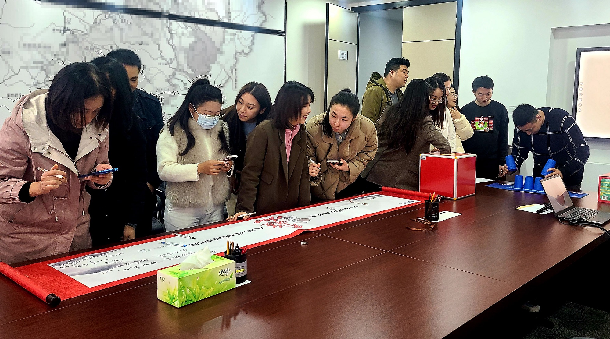 2021年12月31日中午,迎新活動在五樓會議室拉開序幕。本次活動融合了迎新寄語簽名、新年步步高及幸運抽獎等環節,廣大員工踴躍參與,活動現場氣氛熱烈、高潮迭起,充滿了歡呼聲和吶喊聲,讓大家釋放了緊張的工作壓力,感受到集團大家庭的和諧氛圍。